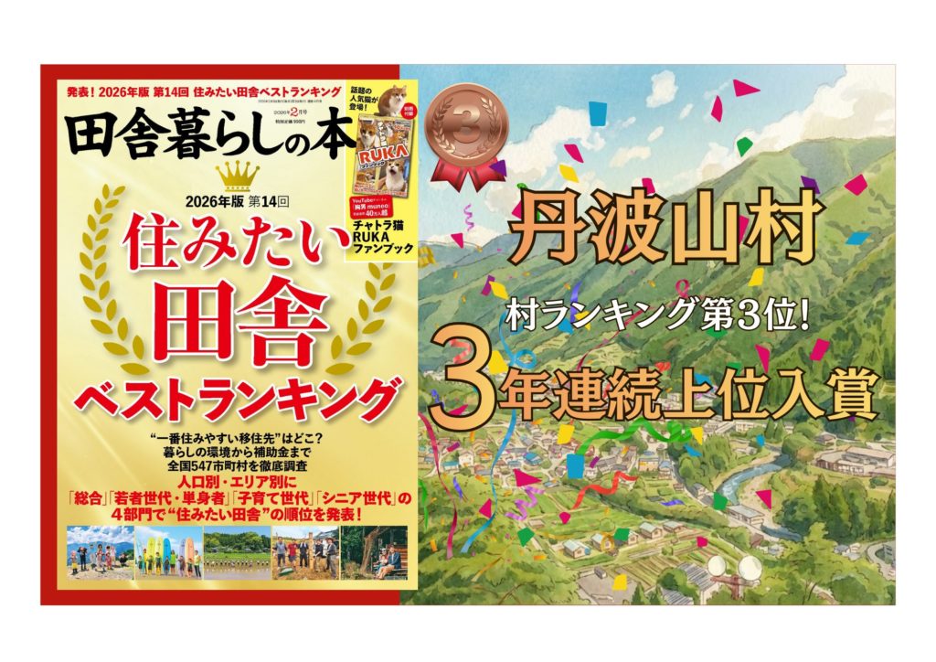 嬉しいニュースが今年も丹波山村に飛び込んできました! 宝島社が発行する『田舎暮らしの本』で「2026年版 第14回 住みたい田舎ベストランキング」が発表され、私たちの丹波山村が、今年は「村ランキング」の総合部門と若者世代・単身者部門で3位にランクインしました。2024年版、2025年版に続き3年連続の首位獲得とはならなかったものの、関東で一番小さい、人口500人に満たない村が、全国の数ある自治体の中で3年も続けて評価されたこと。これは丹波山村の魅力が全国に届いた証(あかし)です。