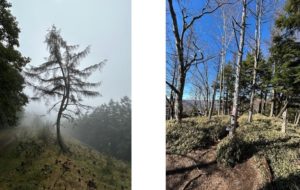 霧の中のダンシングツリー(石尾根)             小雲取山山頂