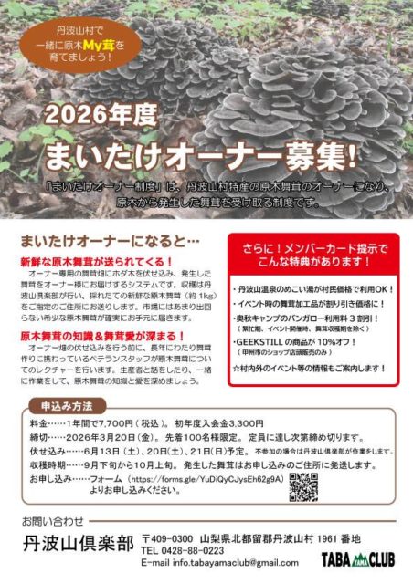 2026年度 まいたけオーナー募集